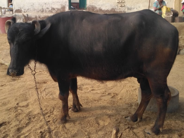 Calm and Beautiful Murrah Breed 4 years old buffalo. Milk Production: 15 Liter per day.