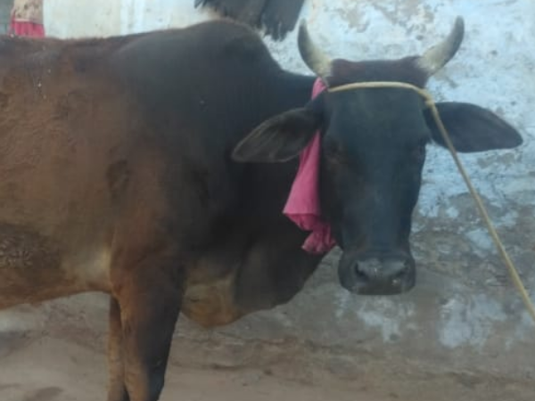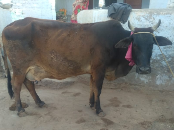 Only 6 years old mix breed cow. Name: KAABRI, Milk Production: 15 Liter per day, Quality: Calm and Beautiful.